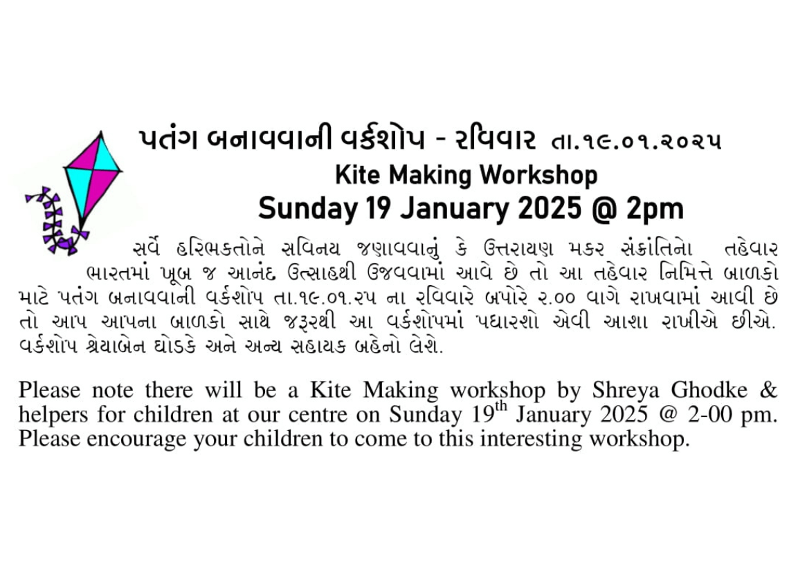 Bhajan Bhojan & Kite making Workshop Sun 19th Jan