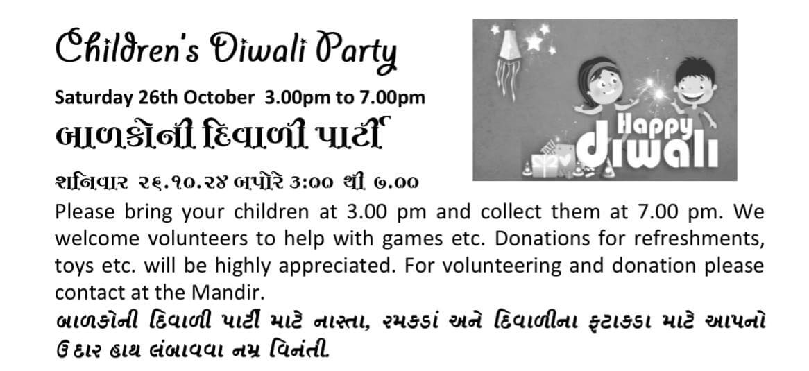 Children’s Diwali Party Sat 26th Oct