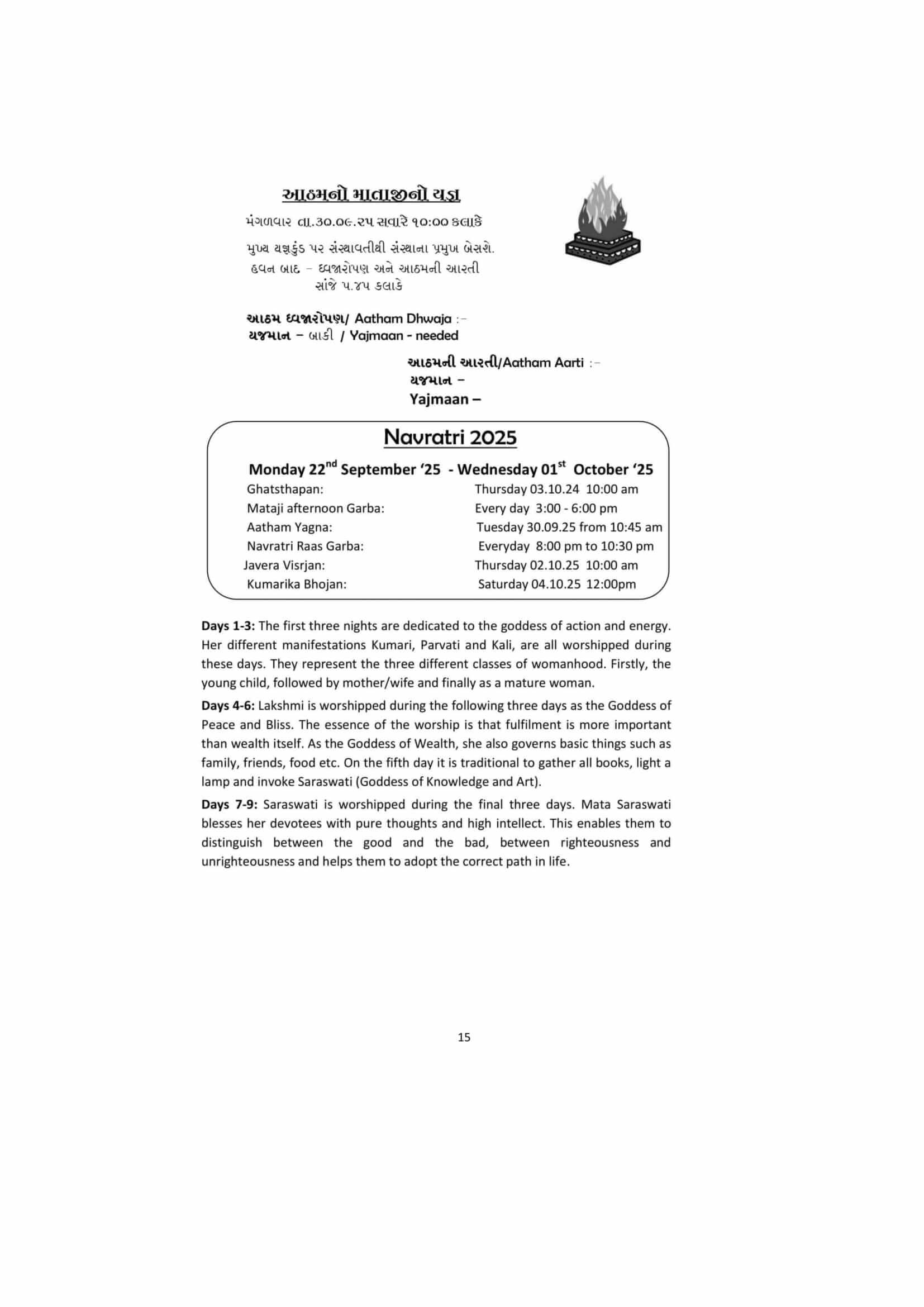 Mataji afternoon Garba: Everyday 3:00 – 6:00 pm
